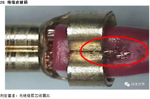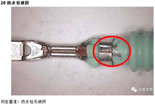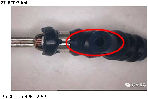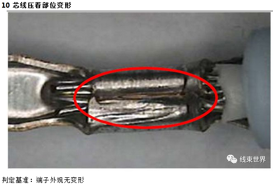 一、芯线压着部位: 芯线在端子中位置适中且包容良好,WS部位经前端芯线露出
