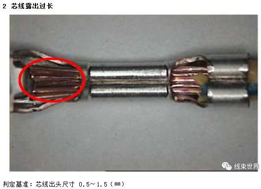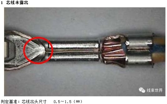 ①(0.5~1.5)㎜,WS部位后端芯线露出