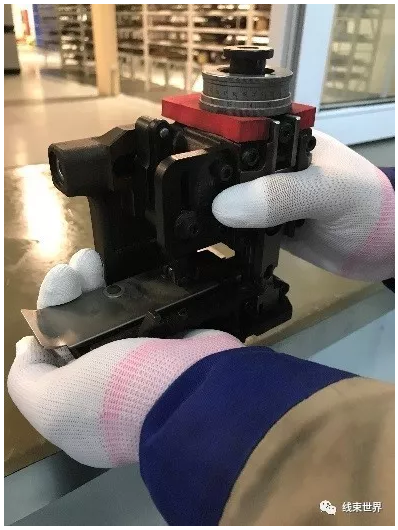 切线员将扫描通过的电线、端子、每封塞及模具安装到切线机上。