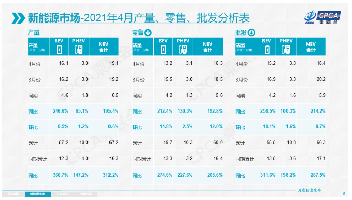 至于上汽通用五菱,4月销量同比增长36.6%至7.1万辆,其大部分销量来源于宏光MINIEV。不过,近日有媒体报道称,10万元以下或车长4.6米以内的新能源车将无法再申请上海免费的新能源“绿牌”。虽然宏光MINIEV在上海的销量占比较低,但是还是有一定的影响。当然,以上内容真假具体新政的内容还需要等待官方公布。